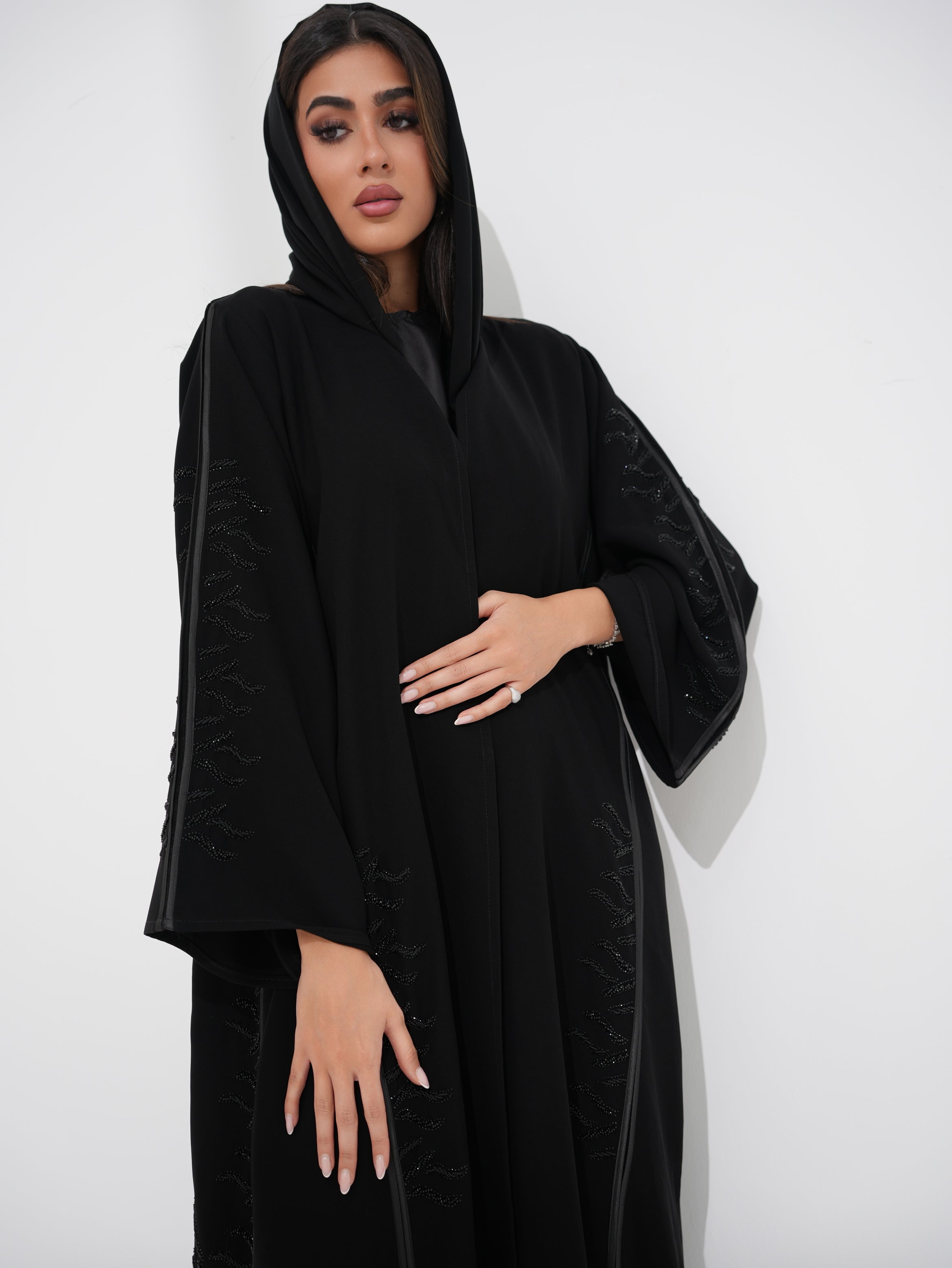Gracefully envelop yourself in luxury with the Lina Abaya. This exquisite black abaya drapes beautifully, exuding elegance and sophistication. Made from high-quality nada fabric , it's perfect for any special occasion. Elevate your style and make a statement with the Lina Abaya.